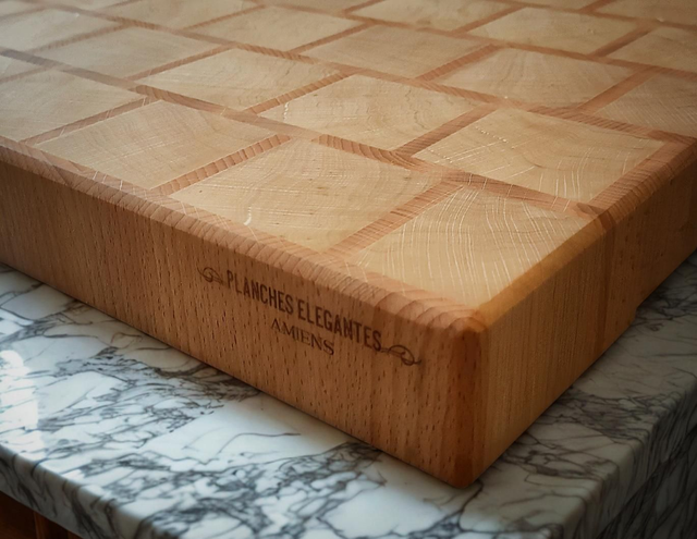 Je vous propose un billot de cuisine en bois de bout fabriquée de manière totalement artisanale dans mon atelier près d'Amiens.